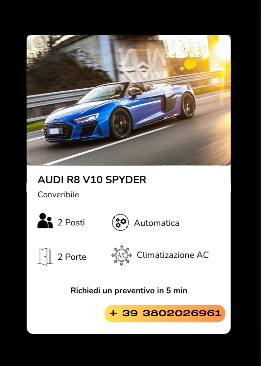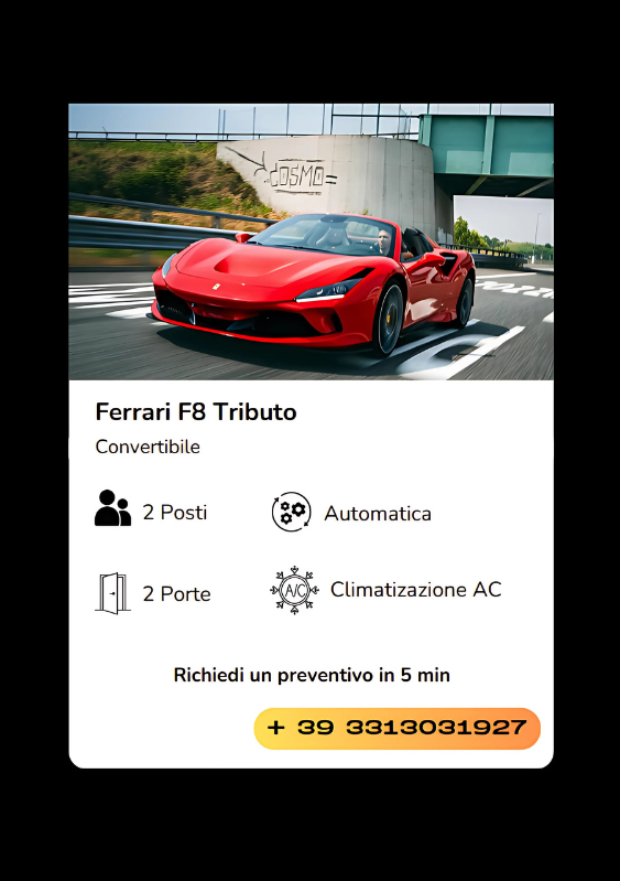 Siamo 2 soci appassionati di auto, con un amore autentico per i motori e tutto ciò che li circonda. Ogni giorno mettiamo entusiasmo, competenza e creatività in tutto ciò che facciamo, per offrirti un servizio che nasce dalla passione e si guida con professionalità. Per noi, le auto non sono solo mezzi di trasporto, ma vere opere d'arte e strumenti di libertà. 🚗✨